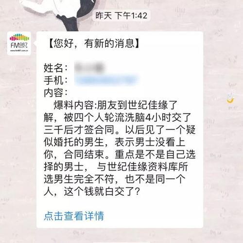 首先,让我们来了解一下世纪佳缘这个平台。作为国内知名的婚恋网站,世纪佳缘自成立以来,就吸引了无数单身男女的目光。近年来,关于世纪佳缘的争议和爆料也是层出不穷。这次,我们就要来揭开这些背后的真相。